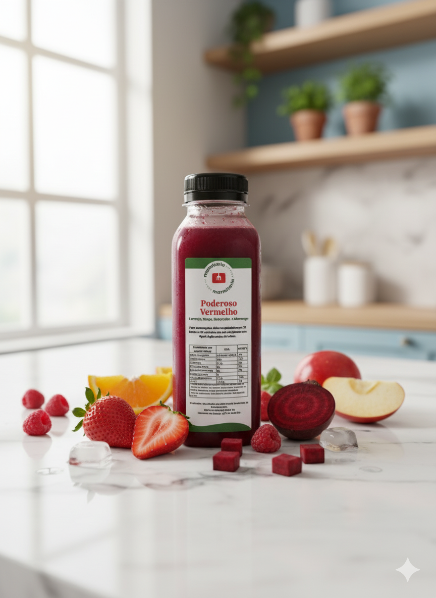 Revigore-se com o nosso suco Poderoso Vermelho, uma combinação perfeita de laranja, maçã, beterraba e morango. Este suco de 300ml é um verdadeiro deleite para os sentidos, oferecendo uma explosão de sabor e uma riqueza em antioxidantes e vitamina C. Ideal para quem busca uma bebida saudável e natural para um detox eficaz e delicioso. Adicione este suco vibrante ao seu dia e sinta a diferença!